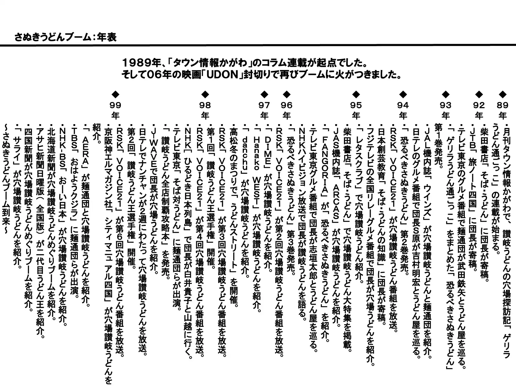 筆者が高校の先輩である田尾和俊氏をランチに誘い、「中北うどん」に連れて行ったことがきっかけで、タウン情報かがわでのエッセイ『「麺通団」さぬきうどん針の穴場探訪記』の連載が始まりました。